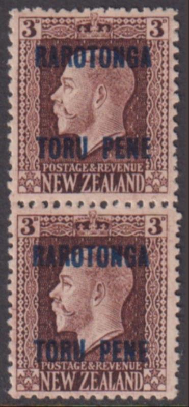 2274 M imageCook Isl 1919 3d GV vert 2-perf pair. SG 49b. Cat £25. Upper stamp mint, lower stamp MUH. (Image)