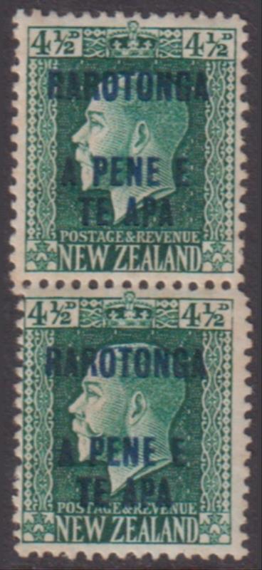 2275 M imageCook Isl 1919 4½d GV vert 2-perf pair. SG 51b. Cat £25. Upper stamp mint, lower stamp MUH. (Image)