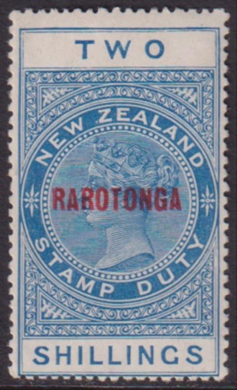 2278 M imageCook Isl 1921 2/- QVLT pale blue, DLR, sideways invtd wmk. SG 76. Cat £28. Mint. (Image)