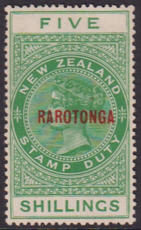 2280 M imageCook Isl 1921 5/- QVLT yellow-green, DLR. SG 78. Cat £38. Mint. (Image)