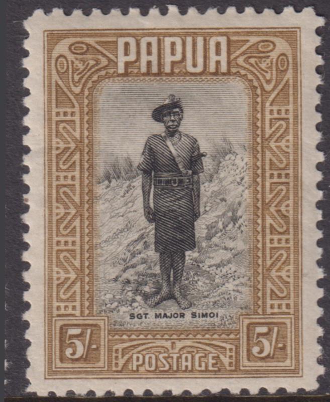 Papua 1932 5/- Native Policemen. SG 143. Cat $70. Mint. (Image)