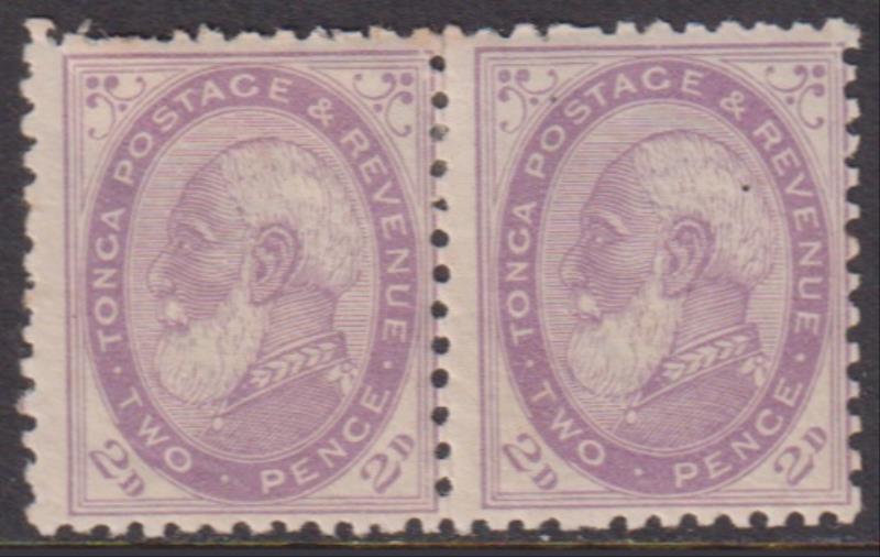 Tonga 1886 2d King George I pale violet, type 1 (normal) horiz pair. SG 2. Cat £110. Mint. (Image)
