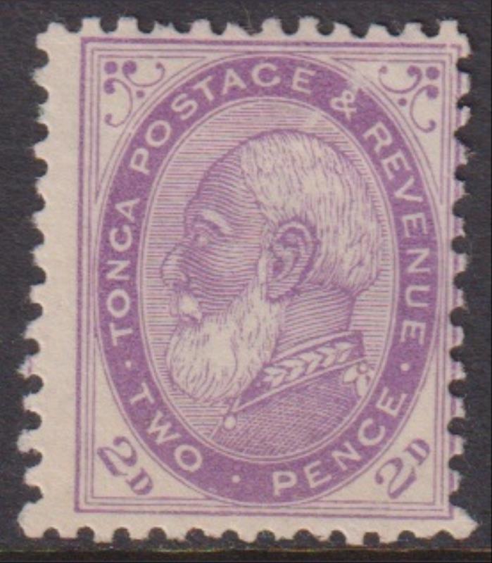 Tonga 1887 2d King George I bright violet, p12 x 11½, type 3 (oval broken under "WO" of "TWO"). SG 2ba. Cat £55. Mint. (Image)