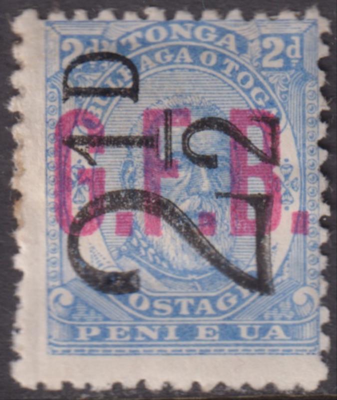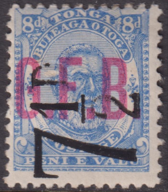 Tonga 1893 7½d on 8d G.F.B (official) variety "D" appears as "T", small surface scuff. SG O9 (var). Cat £40. Mint. (Image)
