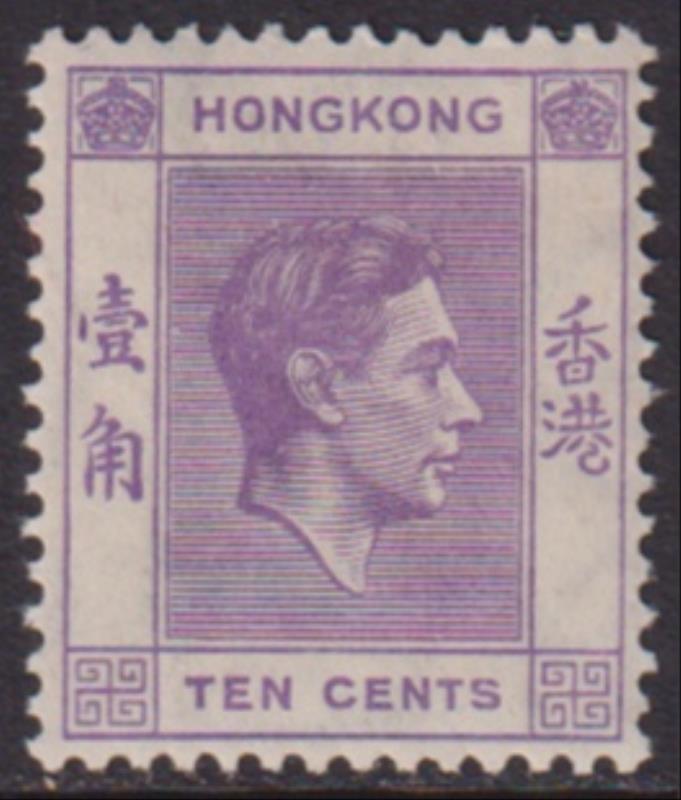 Hong Kong 1938 10c GVI bright violet. SG 145. Cat £50. Mint. (Image)