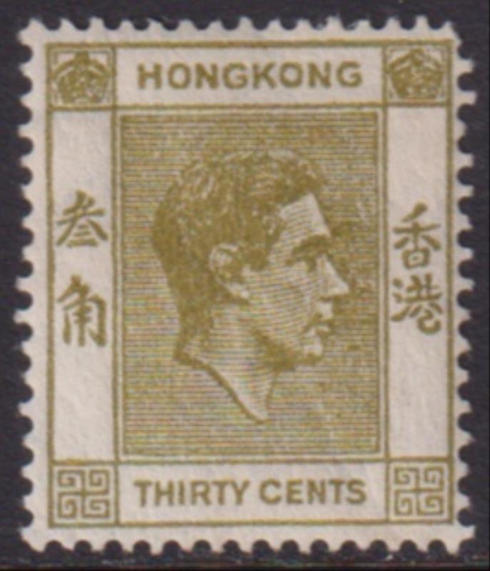 Hong Kong 1945 30c GVI yellowish olive, p14½ x 14. SG 151a. Cat £30. Mint. (Image)