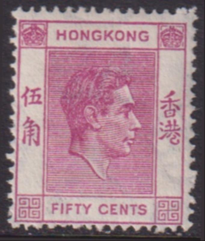 Hong Kong 1945 50c GVI deep magenta, p14½ x 14. SG 153a. Cat £30. Mint. (Image)