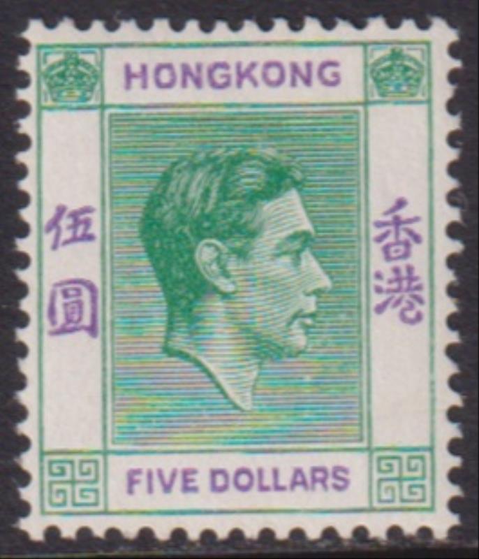 Hong Kong 1946 $5 GVI green & violet. SG 160. Cat £80. VLH mint. (Image)