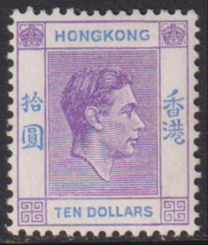 Hong Kong 1946 $10 GVI pale bright lilac & blue, faint gum tone spot. SG 162. Cat £140. VLH mint. (Image)