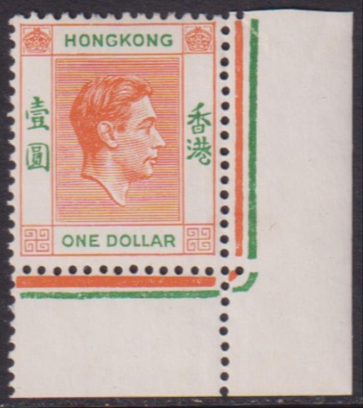 Hong Kong 1948 $1 GVI red-orange & green, chalky paper. SG 156b. Cat £55. Mint. (Image)