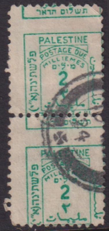 3064 U imagePalestine 1923 2m Postage Due vert pair. SG D2. Cat £24. FU. (Image)