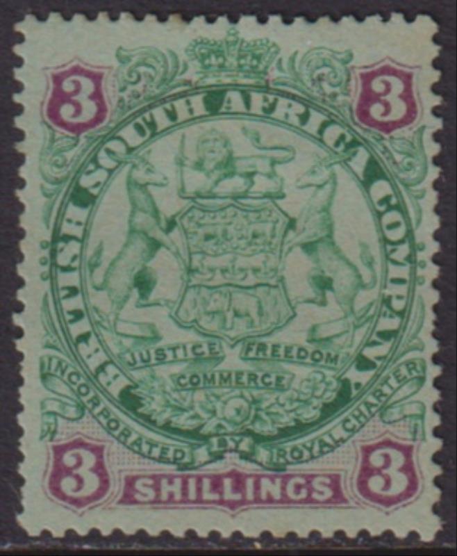 3068 M imageRhodesia 1896 3/- Arms, Die I. SG 36. Cat £90. MNG. (Image)