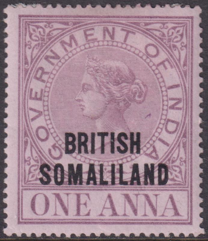3077 M imageSomaliland 1900 1a QV (India) lilac, revenue. Barefoot 1. Cat £20. Mint. (Image)