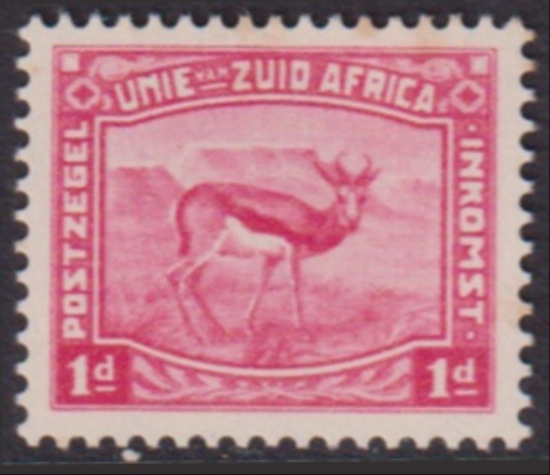 3081 * imageSouth Africa 1923 1d Springbok carmine, p14, Harrison essay. MUH. (Image)