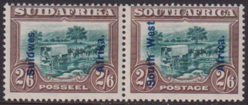 3094 M imageSouth West Africa 1927 2/6d bilingual pair, slight silvering at top on gum. SG 52. Cat £40. Mint. (Image)