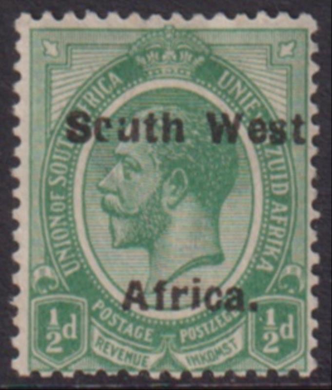 3095 M imageSouth West Africa 1923 ½d GV, "Scuth West" variety. Mint. (Image)