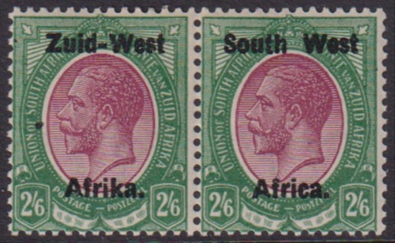 3098 M imageSouth West Africa 1923 2/6d GV bilingual horiz pair. SG 9. Cat £75. Mint. (Image)