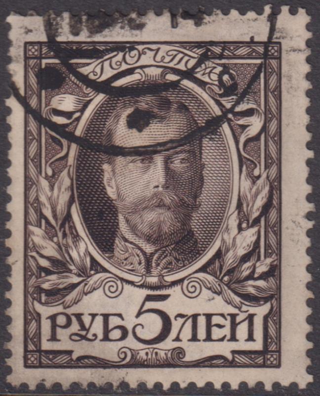 3446 U imageRussia 1913 5R Tsar Nicholas II. SG 142. Cat £23. FU. (Image)