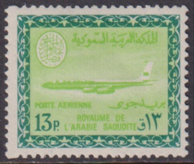 3462 * imageSaudi Arabia 1966 13p Air, King Faisal Cartouche green & myrtle. SG 728. Cat £25. MUH. (Image)