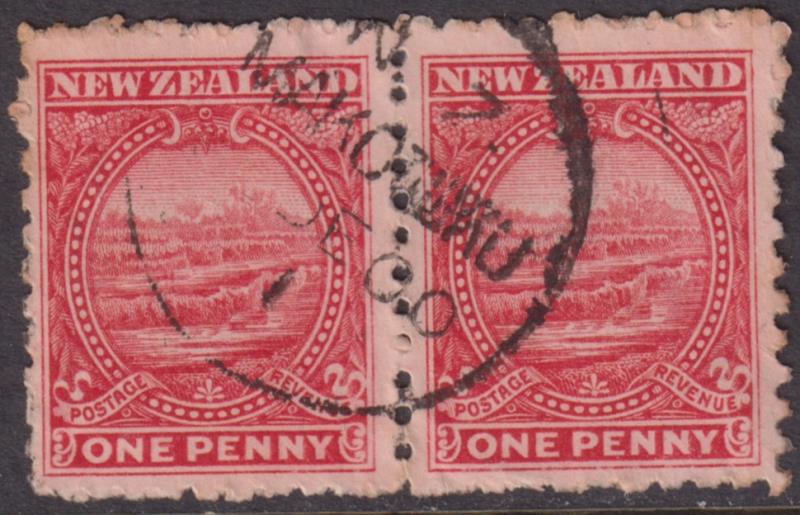 584 U imageMakotuku (NA 1892-1979) good ? June 1900 "A" class cancel on 1d Terraces pair. Wooders 5. (Image)