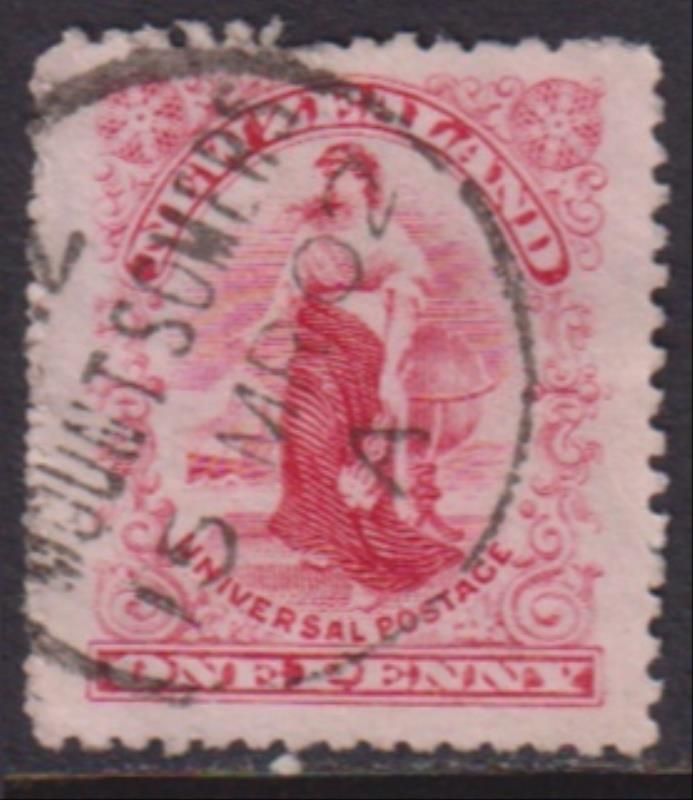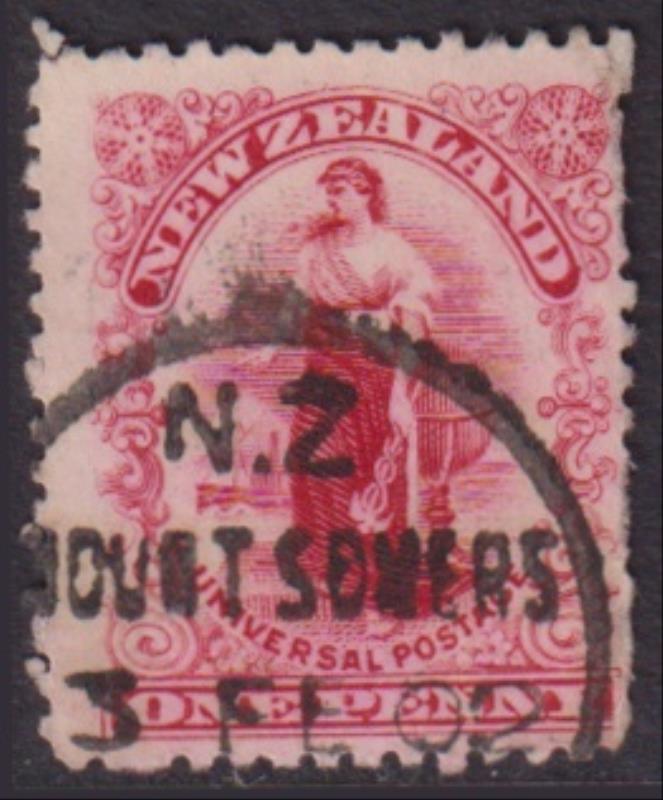595 U imageOaonui (NU 1890-1939) fine 80% strike of A-type cds 7 NO 12 on 1d Dominion. (Image)