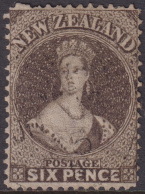 FFQ 6d red-brown, imperf 3 margins, light Christchurch obliterator. SG 43. Cat £180. FU.