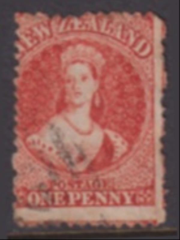 FFQ 1d orange, p12½ (ragged), star wmk, barred cancel on face, rounded corner. SG 112. Cat £110.