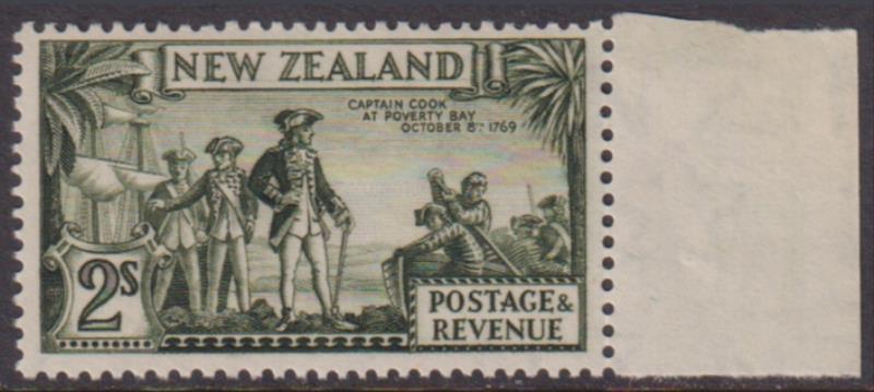 1936 2/- Cook single, p13½-14 x 13½, mult wmk, with RH selvedge. CP L13c. Cat $80. MUH. (Image)