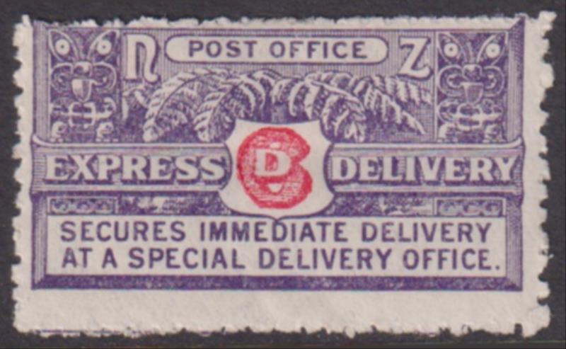 1926 6d Express Delivery, Fernleaves vermilion & purple, p14 x 14½, Cowan. CP U1b(2). Cat $75. Mint. (Image)