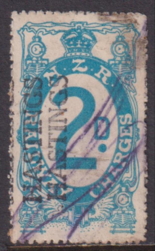 1925-8 2d Railway Charges, p14, variety "HASTINGS/HASTINGS" reading up, thinned, used. Kiwi RN14B(var). (Image)