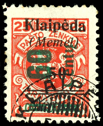 10 Cent on 25 Mark to 60 Cent on 50 Mark postage stamps, four values - complete set, postmarked \KLAIPEDA * 1 * -5. V. 25\, Michel number 232 / 233 with shortened teeth, Michel number 231-233 with tiny blemishes, photo