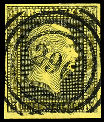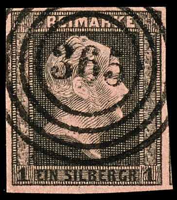 365 - Egeln (Administrative District of Magdeburg), clear and centrally struck on a 1 silver groschen black on pink, flawless condition. (2a) \365\ - Egeln (Reg.-Bez. Magdeburg), klar und zentrisch auf 1 Silbergroschen