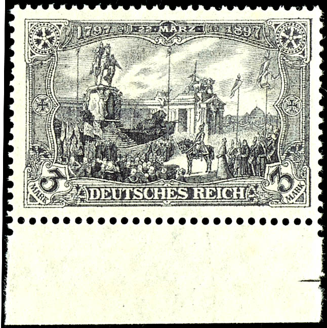 3 Mark German Empire, 26:17 perforation holes, wartime issue, black violet gray, bottom margin piece, mint never hinged, flawless condition, unsigned, photo certificate Michael Jaeschke-Lantelme BPP (2025) \fresh color, very