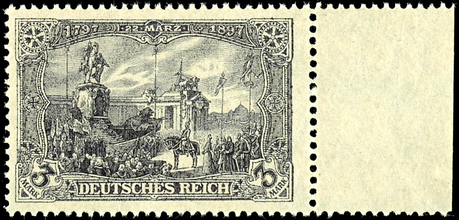 3 Mark German Empire, 26:17 perforation holes, wartime issue, black violet gray, from the right margin, mint never hinged, flawless condition, unsigned, photo certificate Michael Jaeschke-Lantelme BPP (2025) \fresh color, very
