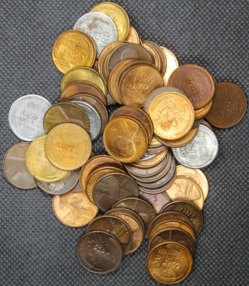 325 image (56) replicas of 1974 Aluminum Cents all are marked "COPY" and not intended to deceive prospective buyers. Quality imitations. Several 1974 aluminum cents were alleged to have been lost and not handed back to government authorities back in 1974 when the US Mint was experimenting with alternative metals for the production of the one-cent piece. (Image)