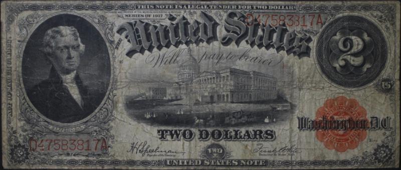 332 image (2) 1917 $2 Red Seals both F-60 S/N D28665983A & D47583817A both VG. Attractive for the grades w/ great centering and no issues other than wear. (Image) (imageb) (All Images)