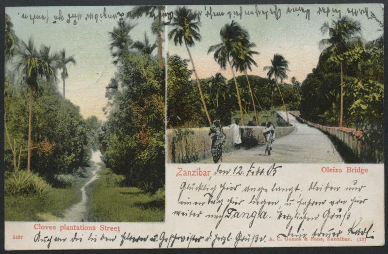 GERMAN EAST AFRICA: 1905 usage of Zanzibar PPC with GEA 5pf + Zanzibar 1a tied by 'TANGA' cds, to Germany with 'SAGAN' arrival cds.