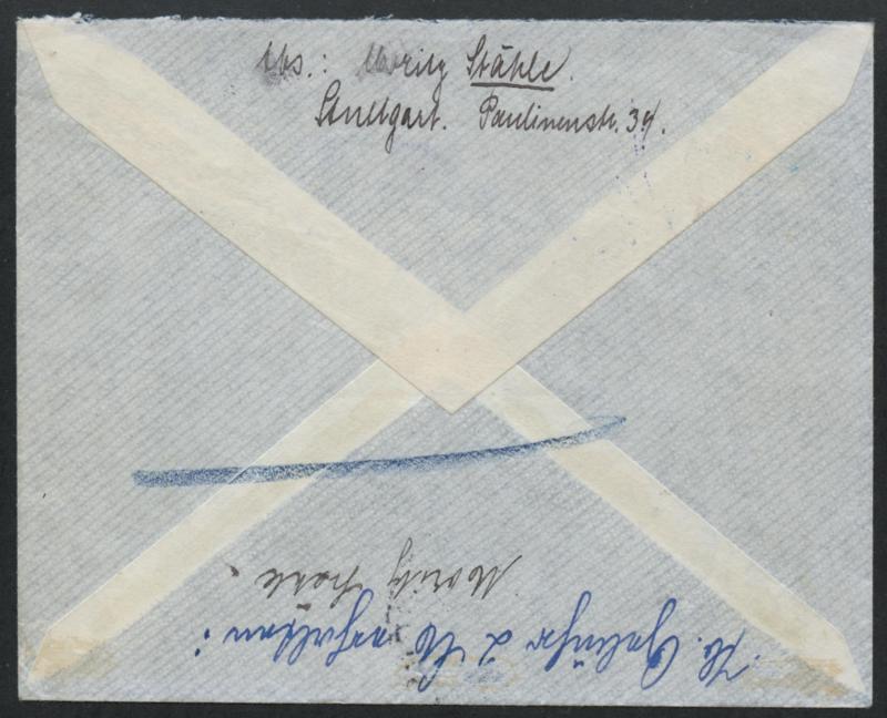 Stuttgart cds, largely very fine 'BREMEN 1/ T.B. /16.1.17/D.O.R.' cds below, largely superb 'Zuruck/Wegen Einstellung des Tauchboot/briefverkehrs zuruck an Absender' (= Return to sender owing to abandonment of Submarine Letter Service) cachet in