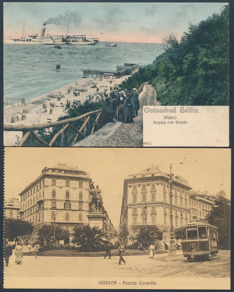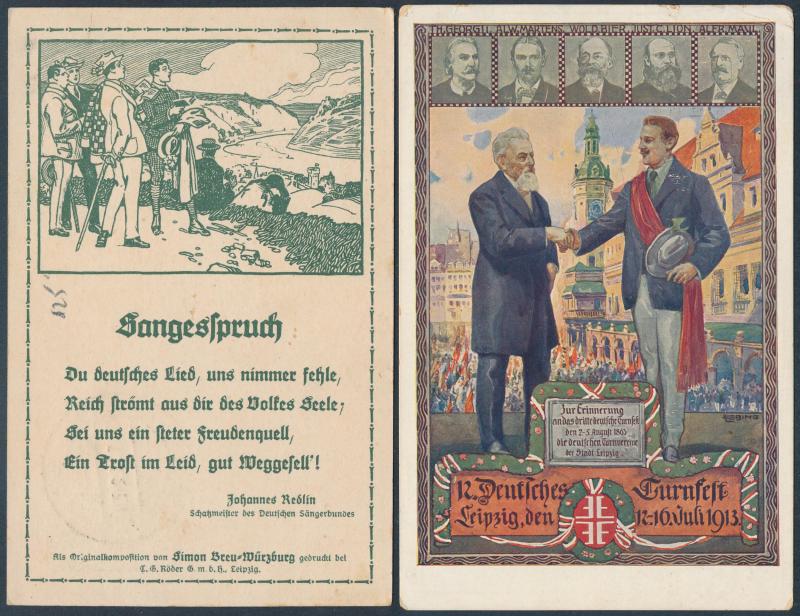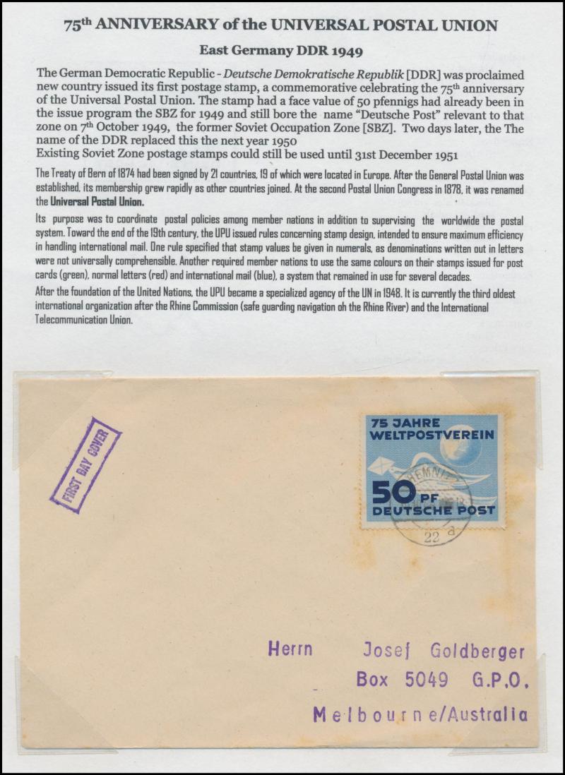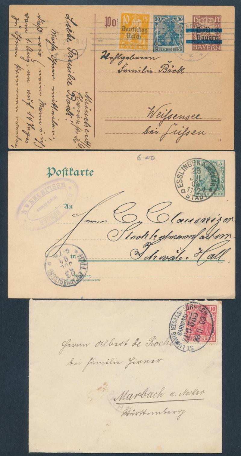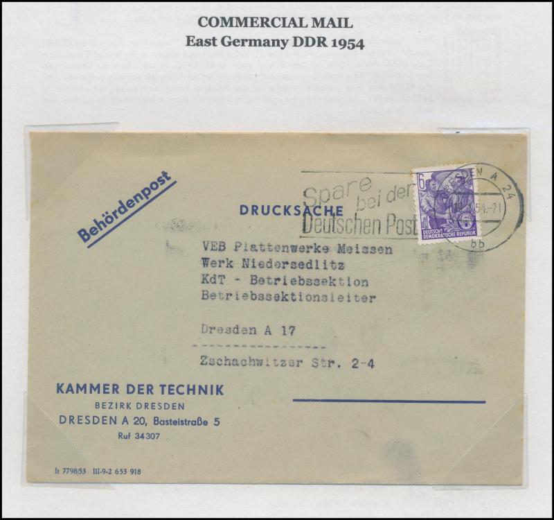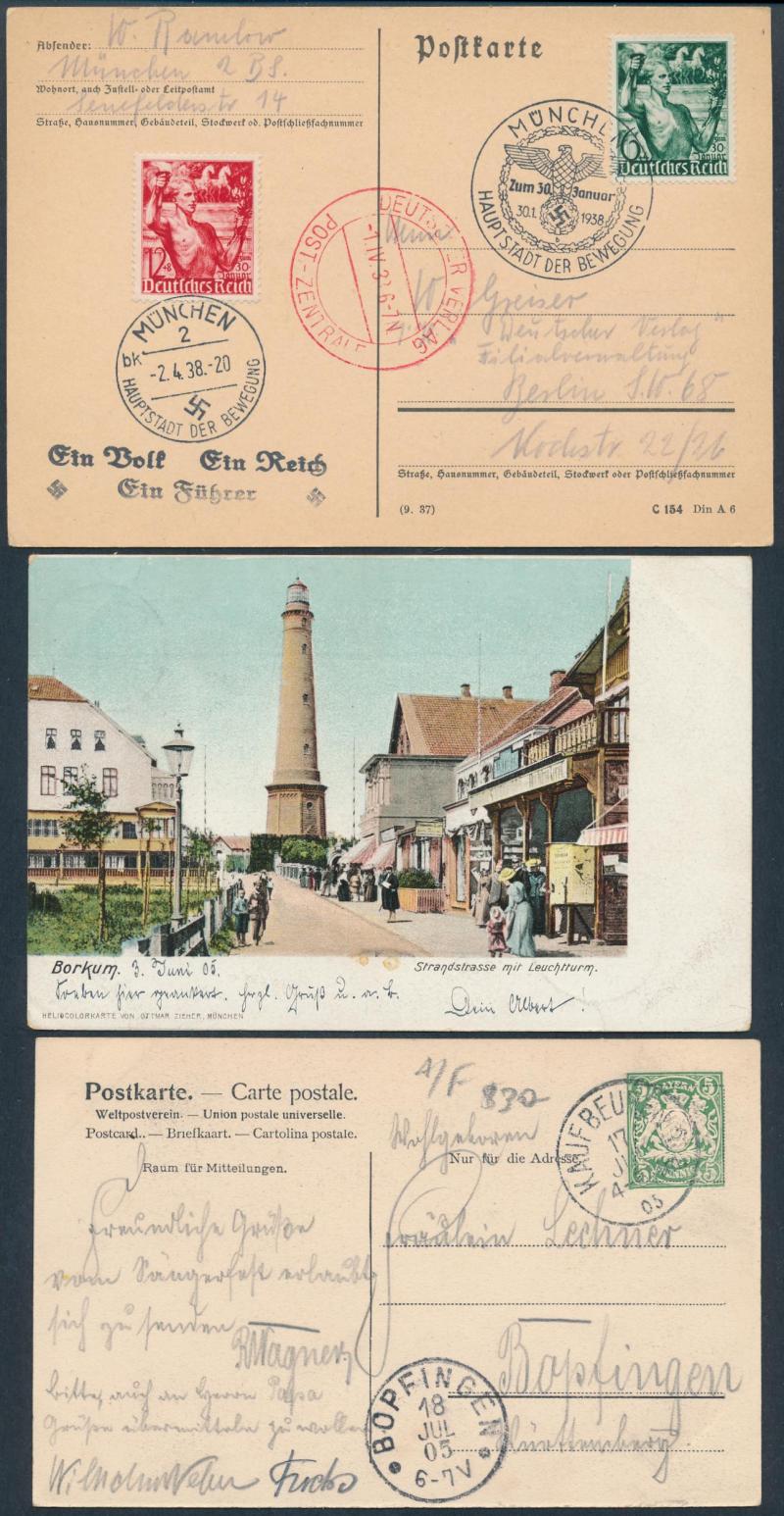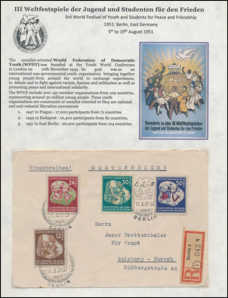 stationery, picture postcards, flight covers, commercial mail, etc. Among the many better items we noted West Germany 1951 Lübeck Church duo used and 1952 Youth duo on illustrated FDC; West Berlin 1950 ERP 20pf on commemorative postcard; East Germany