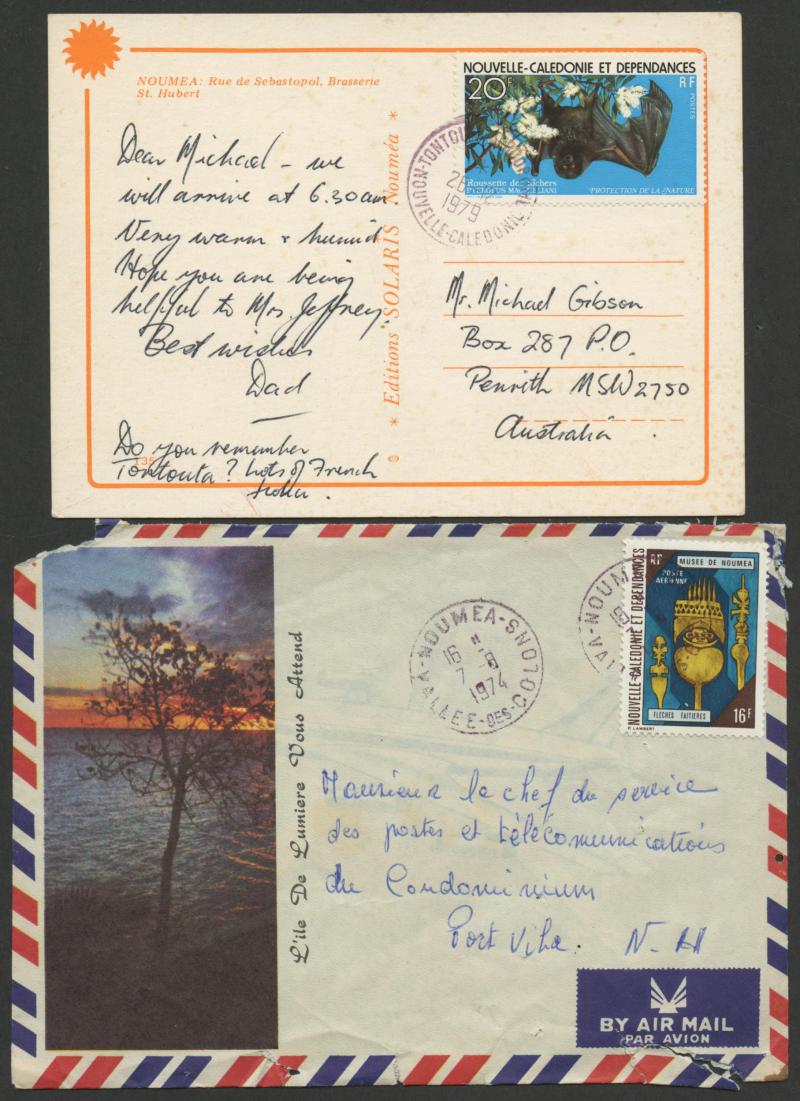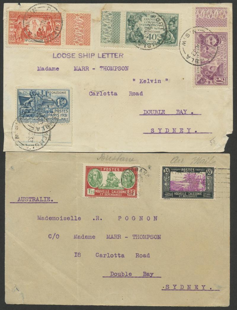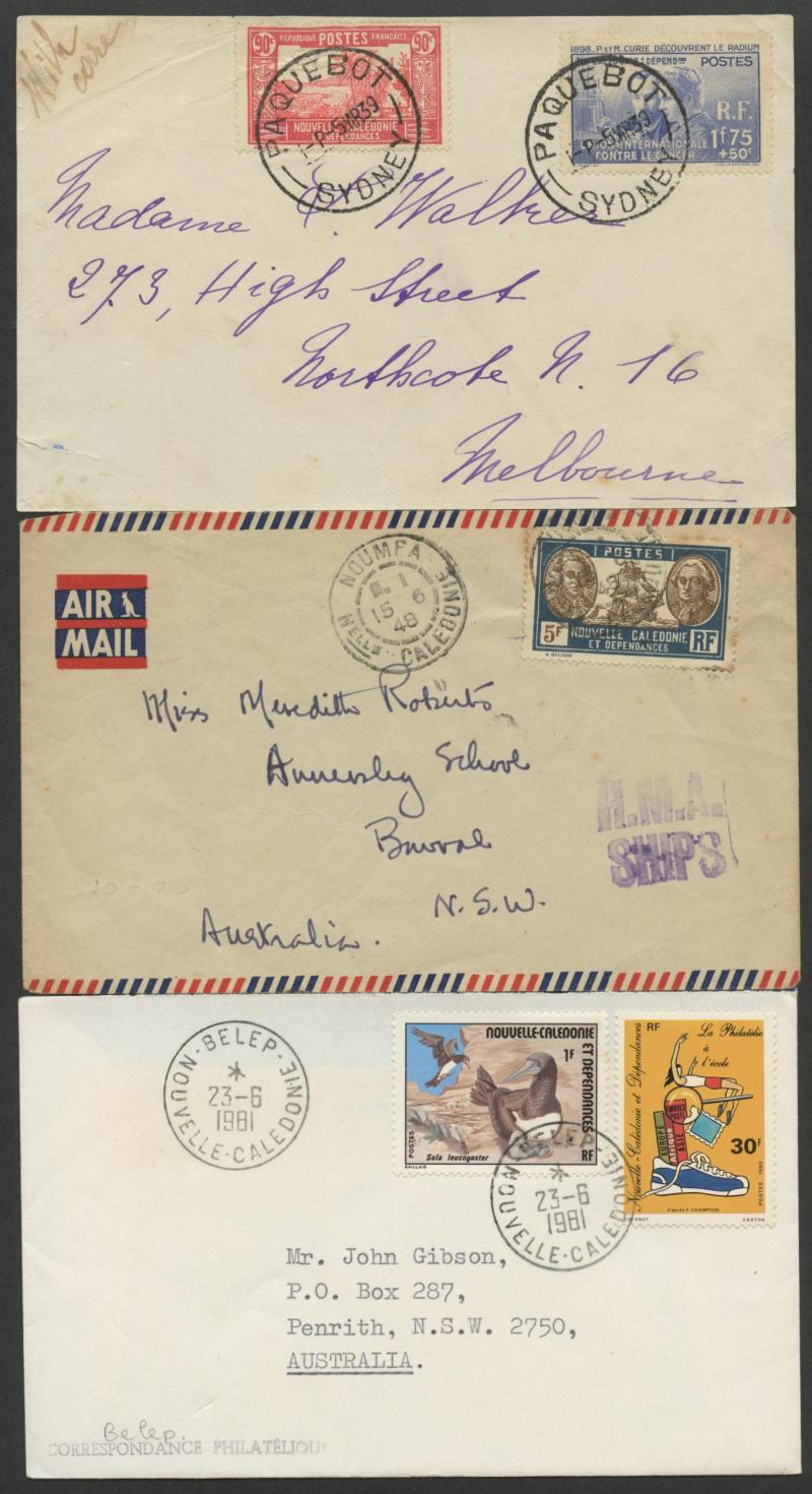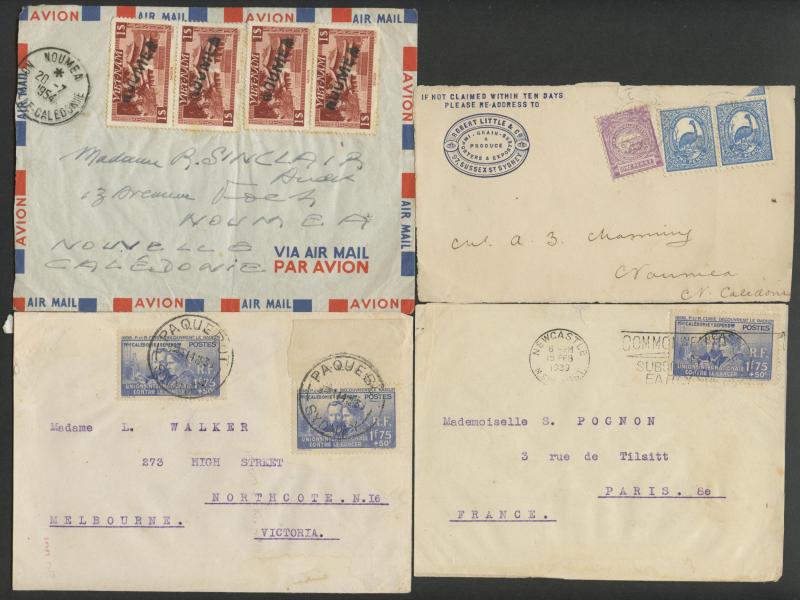 NEW CALEDONIA: Commercial mail including two 1890s NSW cover fronts cancelled on arrival at Noumea, 1937 to France with Dutch oval