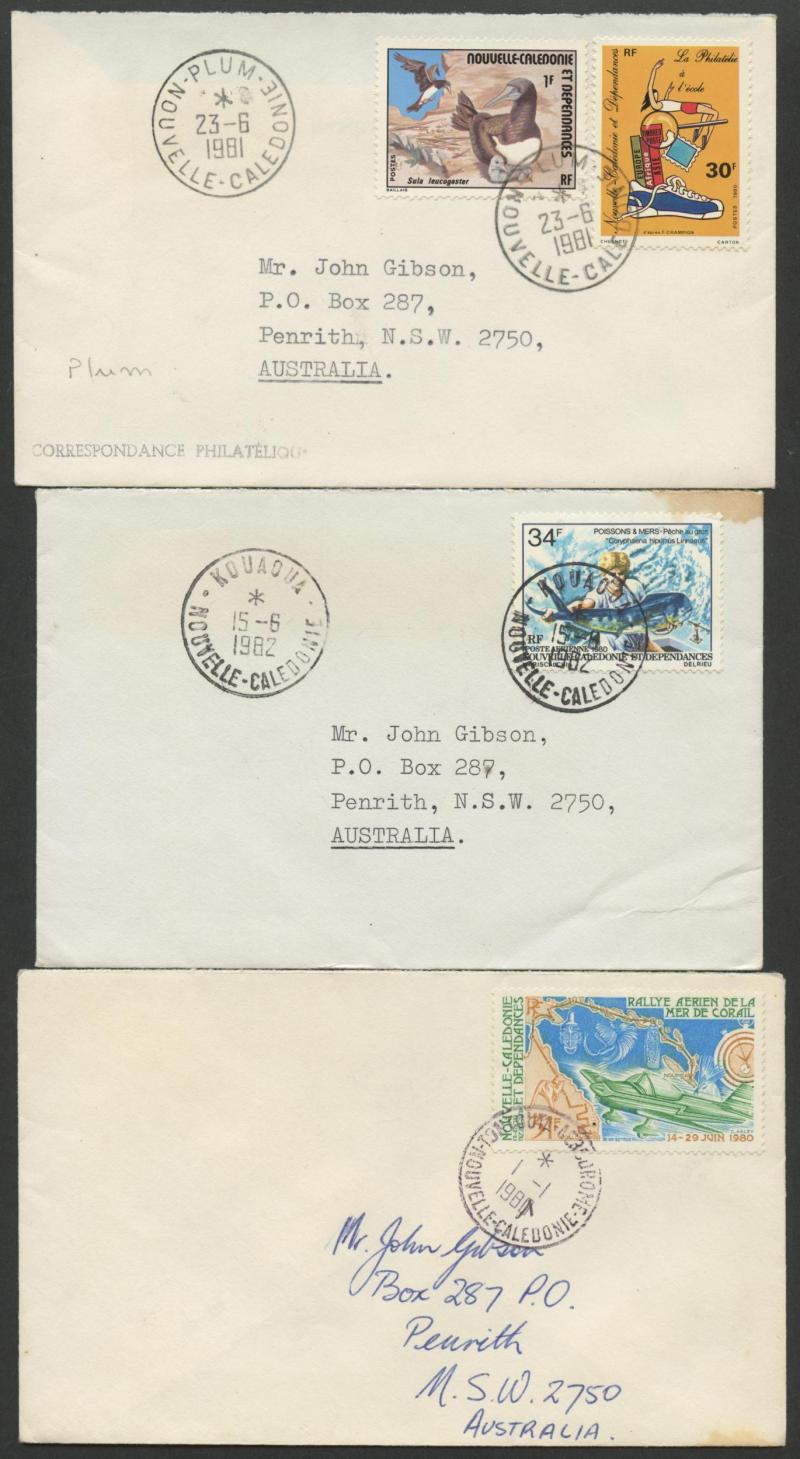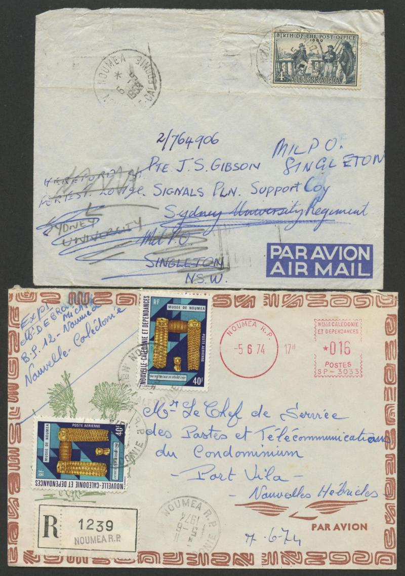 Australian 5d & Noumea cancel, a couple of later items plus a dozen John Gibson covers from small post offices, condition variable.