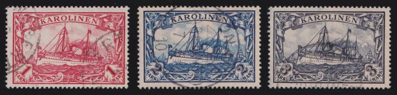 CAROLINE ISLANDS: 1900 Yacht 1mk to 5mk SG 22-25 (MIchel 16-19), each with large-part 'PONAPE' cds, the 1mk with two part-strikes,