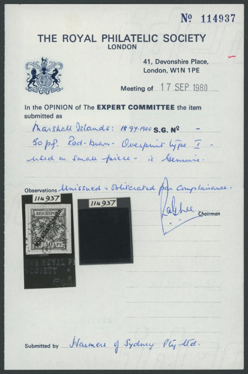 MARSHALL ISLANDS: 1899 'Marschall-Inseln' Overprints Berlin Issue 50pf red-brown Michel 6II (Scott 6; Gibbons unlisted) tied to