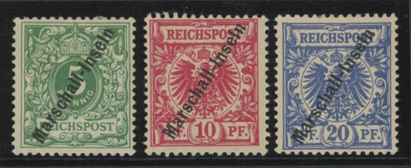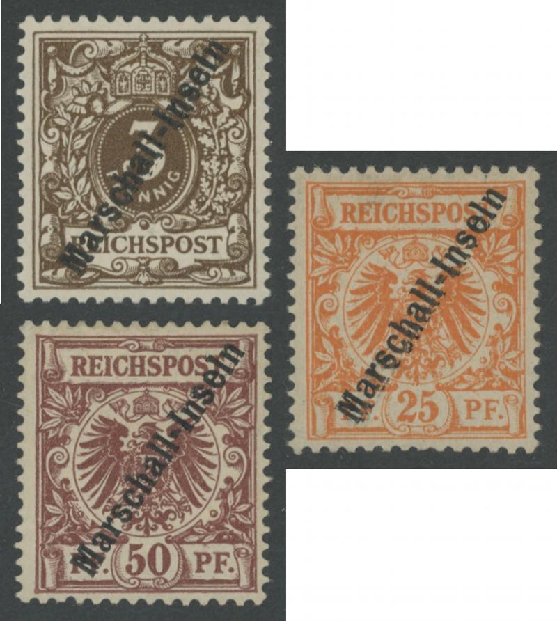 MARSHALL ISLANDS: 1899 'Marschall-Inseln' Overprints Berlin Issue 3pf to 50pf set Michel 1II-6II (Scott 1-6; Gibbons unlisted),