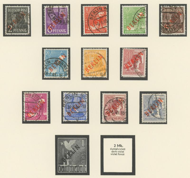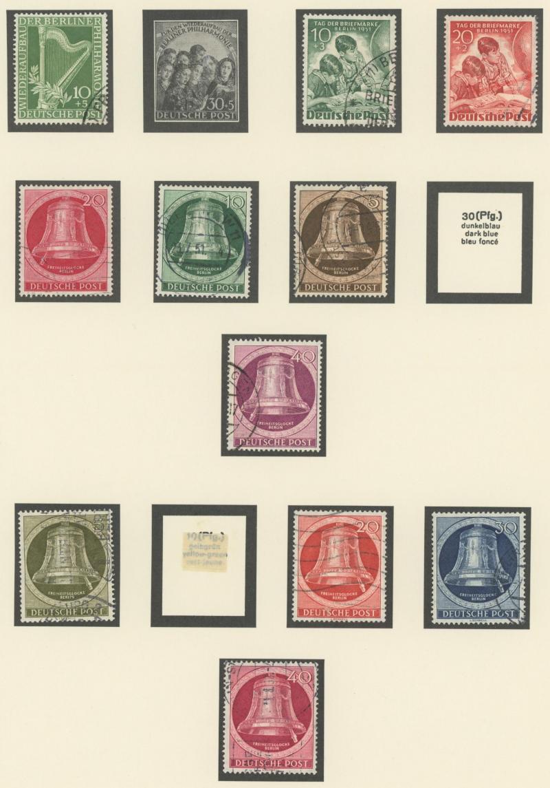 WEST BERLIN: Collection 1948-1990 used in two expensive & heavy Safe hingeless albums, from 1948-49 'BERLIN' Black Overprints