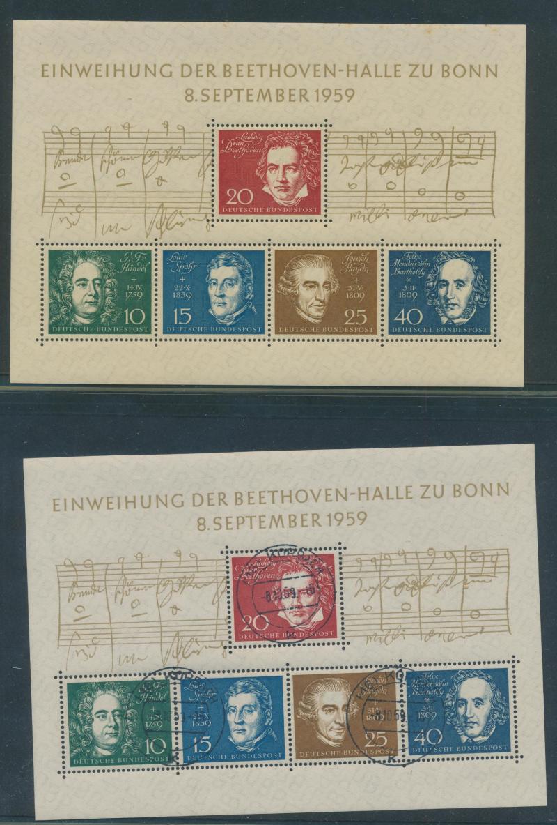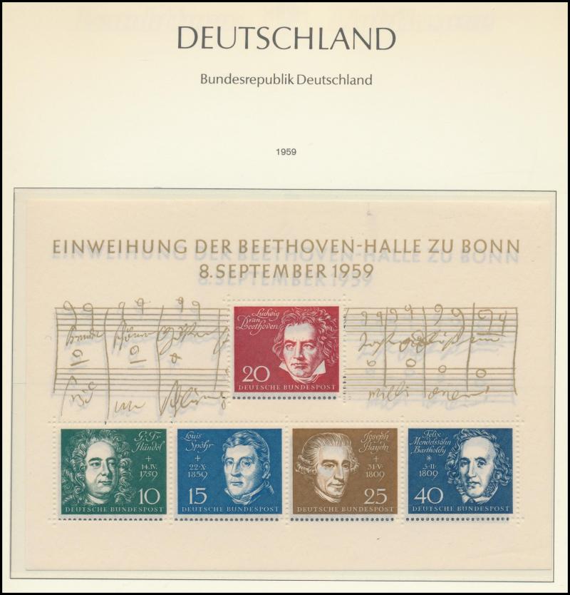 Church duo, 1952 Charity set and 1953 Charity & Transport sets all used, then predominantly mint with 1954 Charity set **, 1959 Beethoven M/S **, etc, the later issues virtually complete increasingly unmounted, plus 2002-2010 issues complete