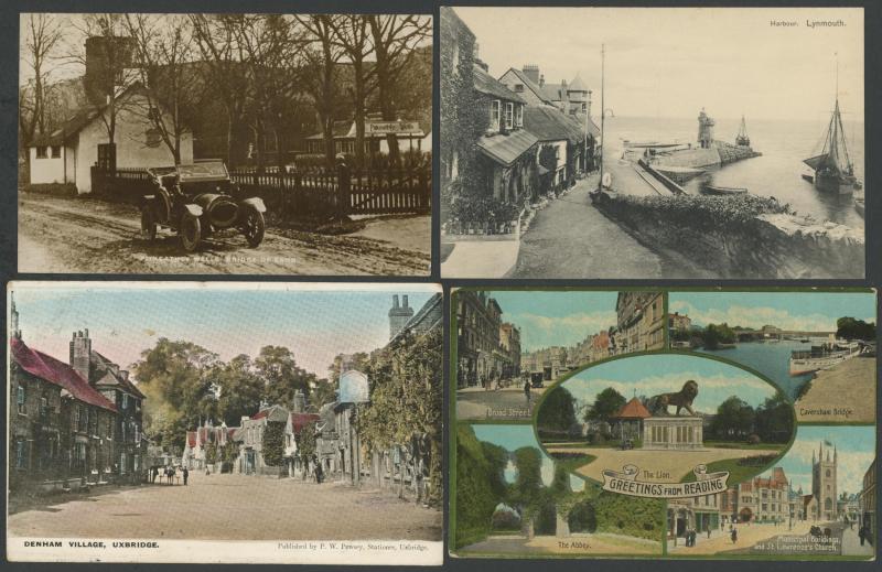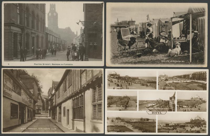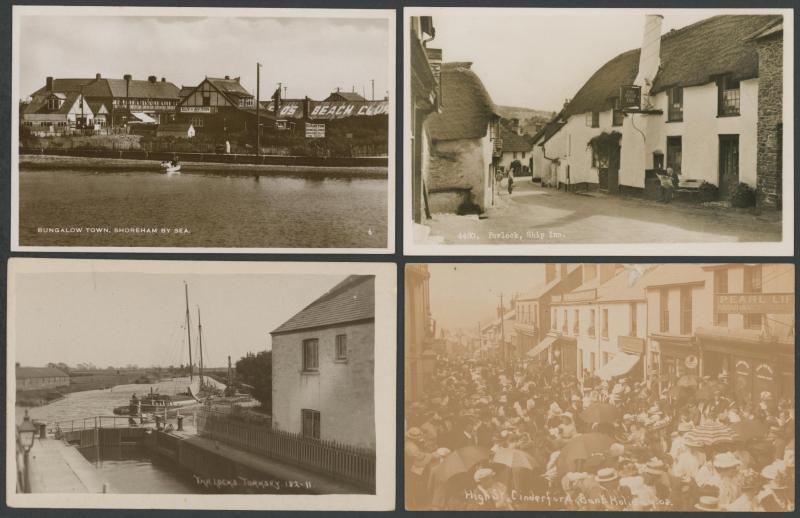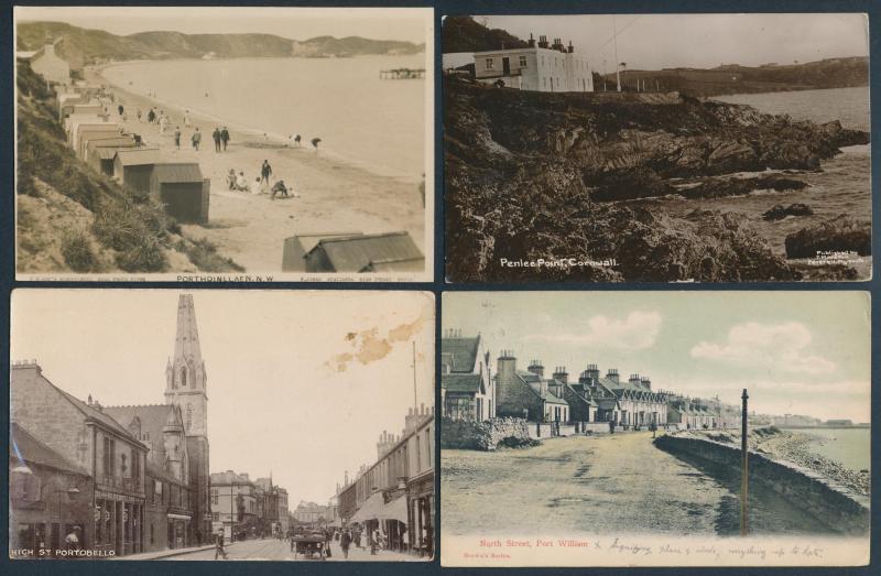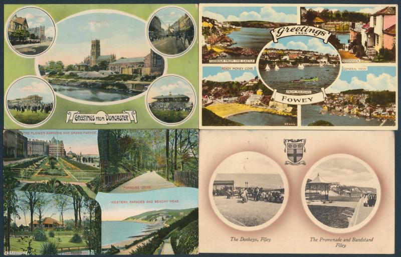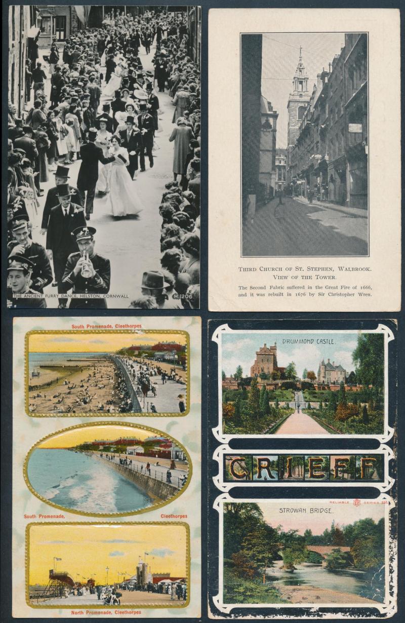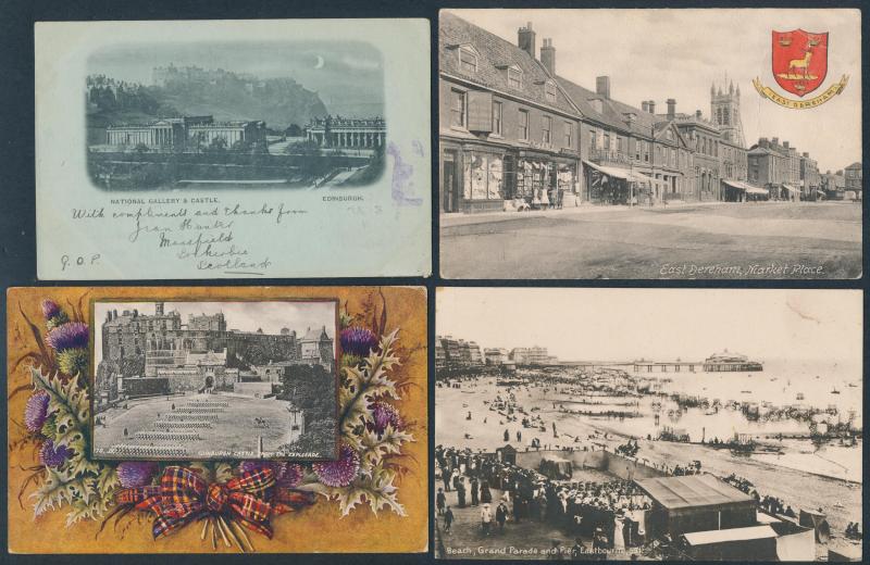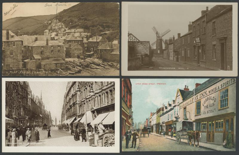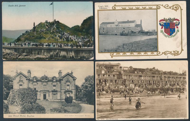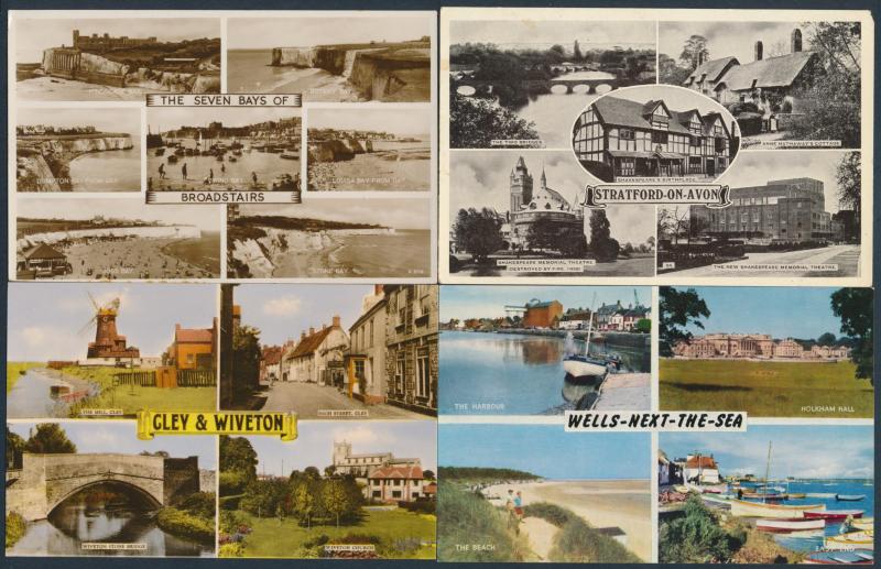 half of the collection is mostly colourful post-WWII types including for Hollingworth Lake, Minehead, Fowey, Fakenham, Cley & Wiveton, Wells-Next-the-Sea & Blakeney, etc, some bumped corners but generally fine to very fine.
