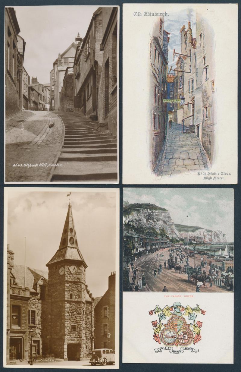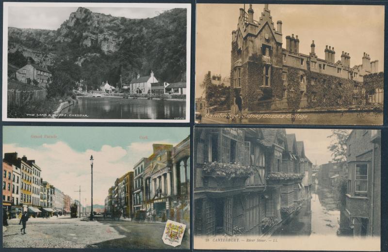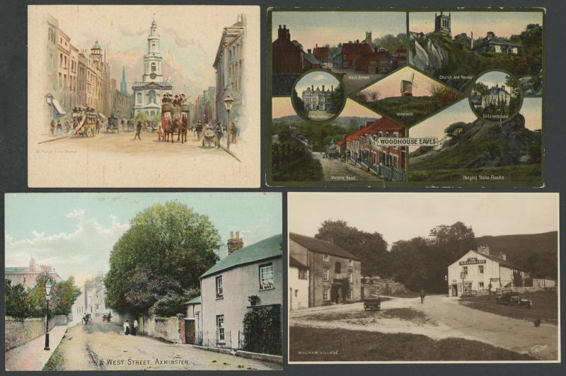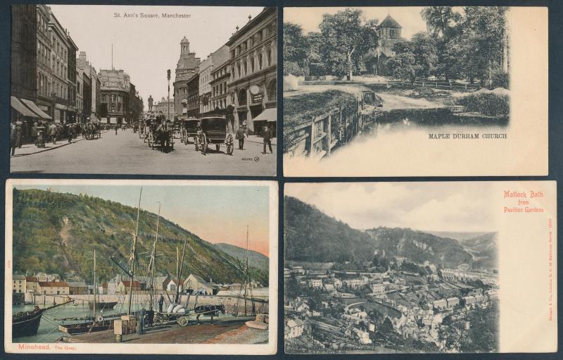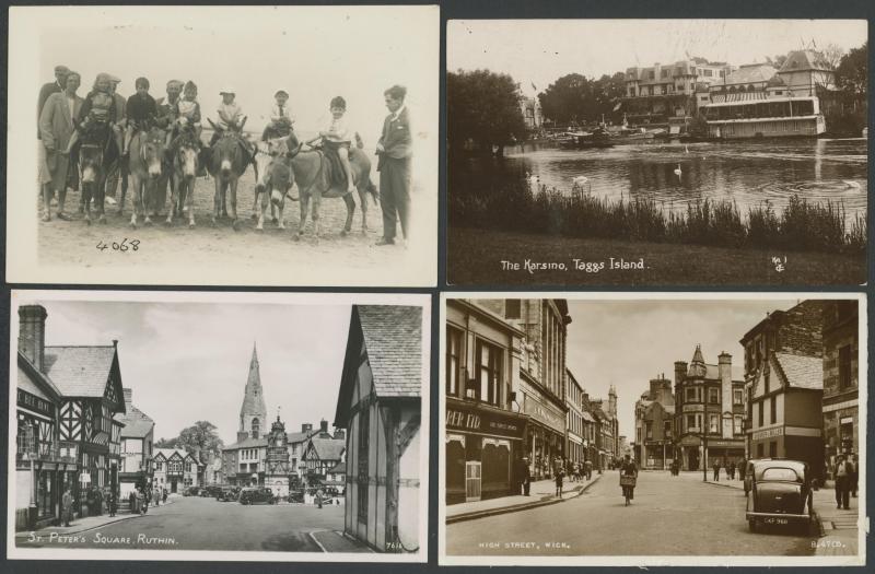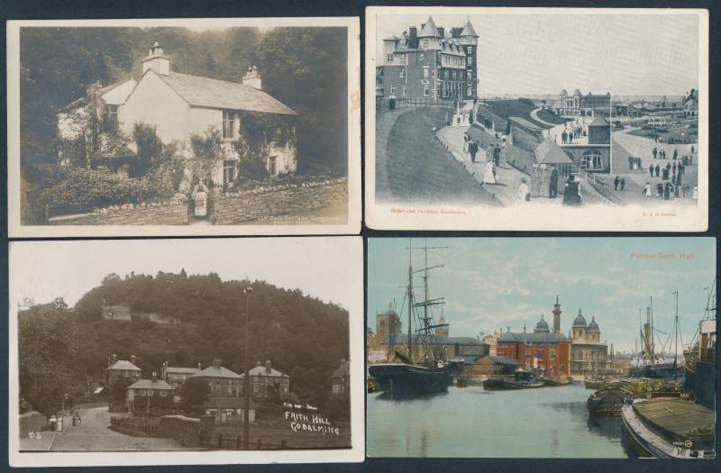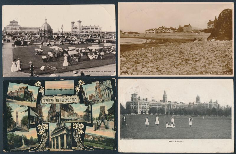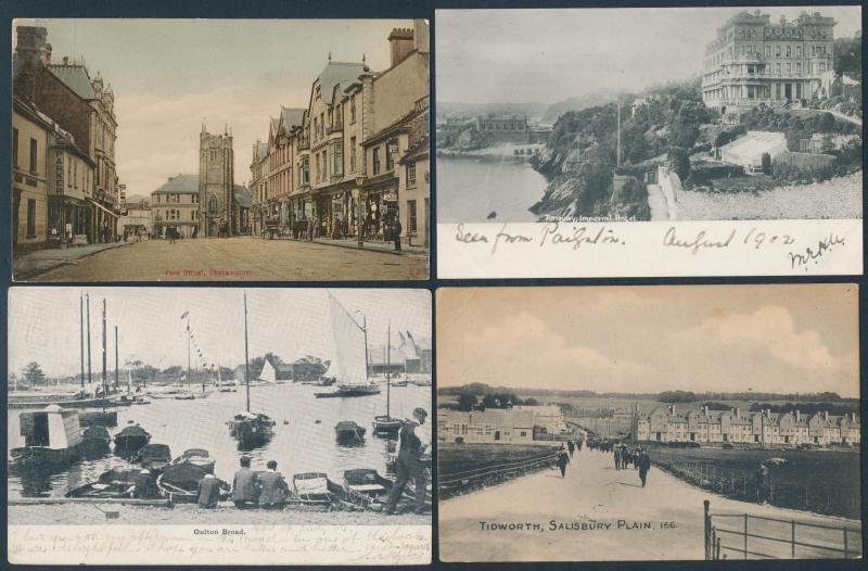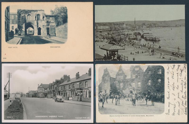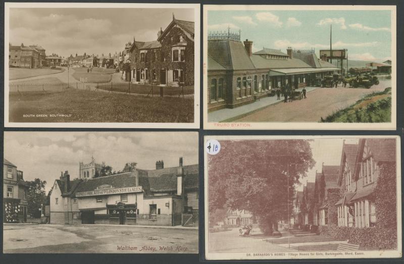half of the collection is mostly colourful post-WWII types including for Hollingworth Lake, Minehead, Fowey, Fakenham, Cley & Wiveton, Wells-Next-the-Sea & Blakeney, etc, some bumped corners but generally fine to very fine.
