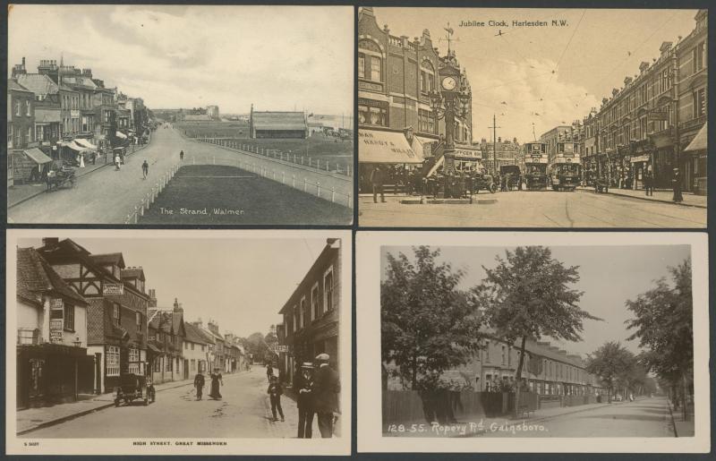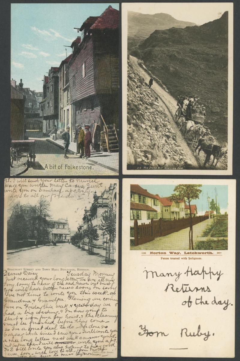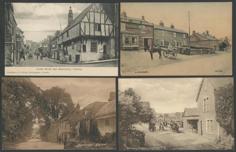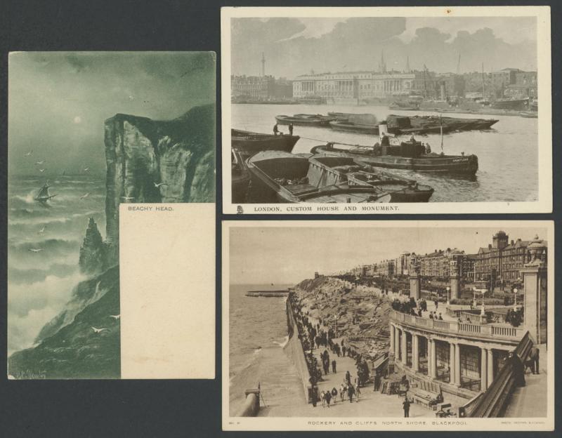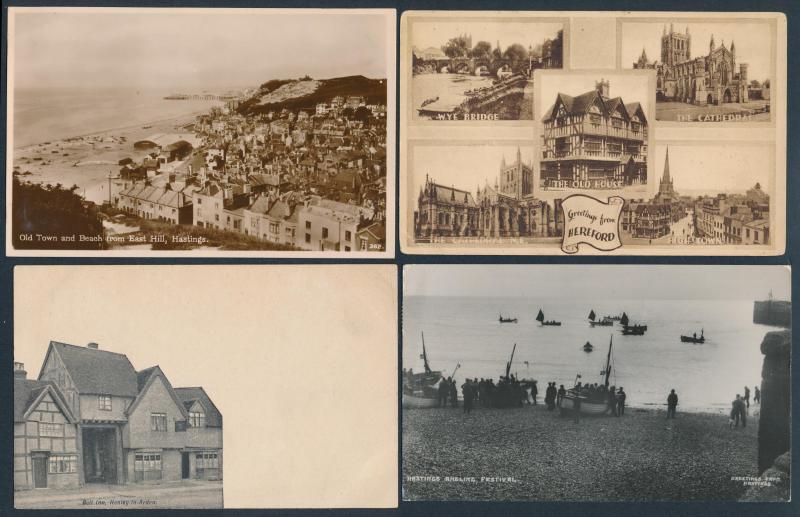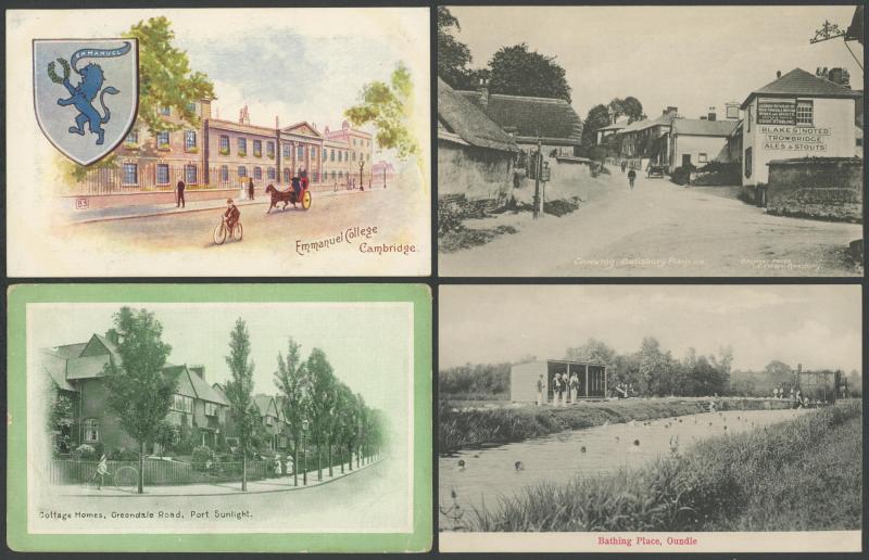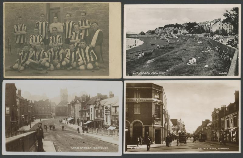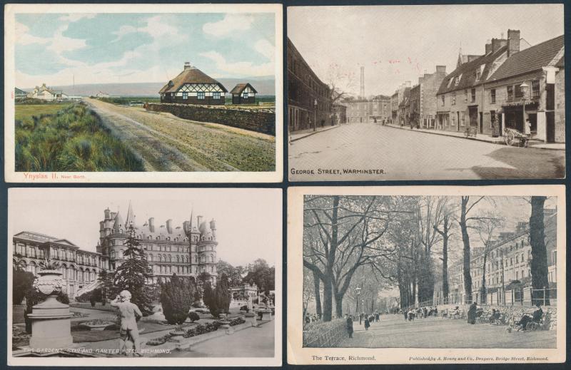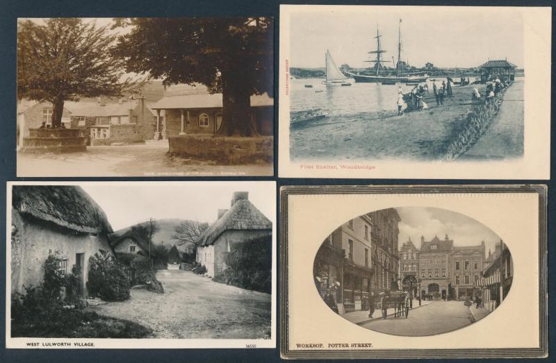 half of the collection is mostly colourful post-WWII types including for Hollingworth Lake, Minehead, Fowey, Fakenham, Cley & Wiveton, Wells-Next-the-Sea & Blakeney, etc, some bumped corners but generally fine to very fine.