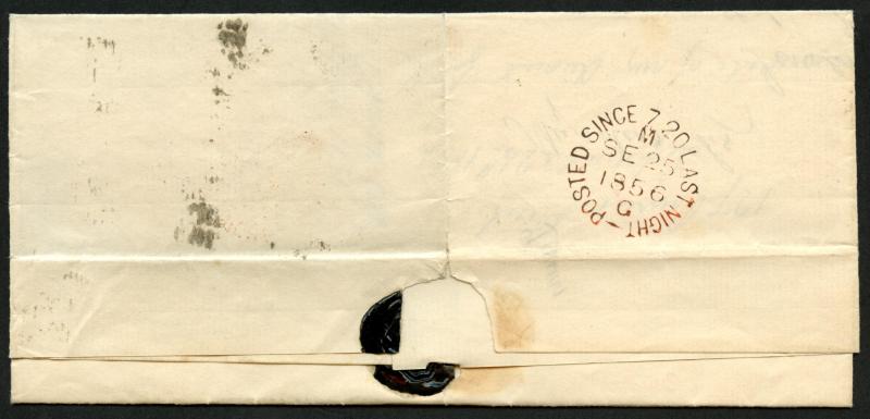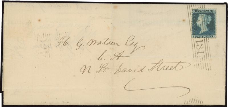 margins (Cat £850 on cover with red Maltese Cross); 1856 double-rate local entire with 2d tied by Edinburgh '131' roller-cancel & superb 'POSTED SINCE 7.20 LAST NIGHT' backstamp; and 1857 cover to Wales with 1d red tied by largely very fine strike of
